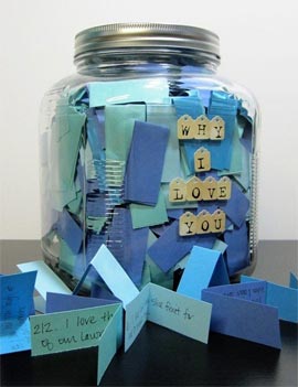 Escribe en papelitos todo lo que te gusta de tu pareja y las razones por las cuales la amas. También puedes incluir frases de amor, poesías o propuestas de salidas para hacer juntos.