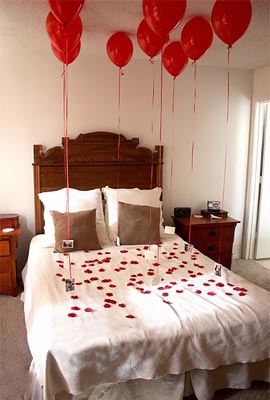Puedes atar fotos y mensajes de amor en cada cinta.Para una ambientación aún más romántica, esparce pétalos de rosa sobre la cama.